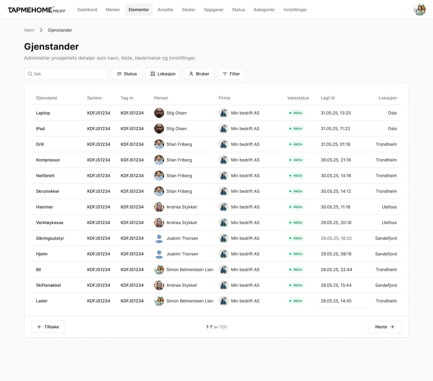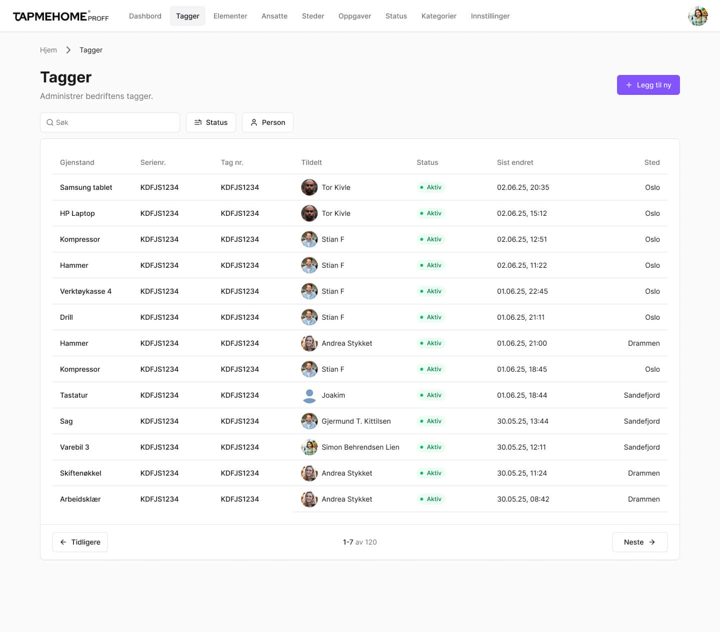 Utstyr kan enkelt overføres mellom ansatte eller leveres tilbake – med én enkel tæpp i appen.